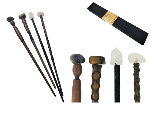 These wands are made of resin so allow a lot of detail – they are hand painted and designed to look like ancient wood and feature four different designs – with real crystals on top – clear quartz, rose quartz, tiger eye or amethyst (I cant actually see which is which without opening everything up, so we’ll call them random – maybe JR Rowling was right, and the wand picks the witch!)