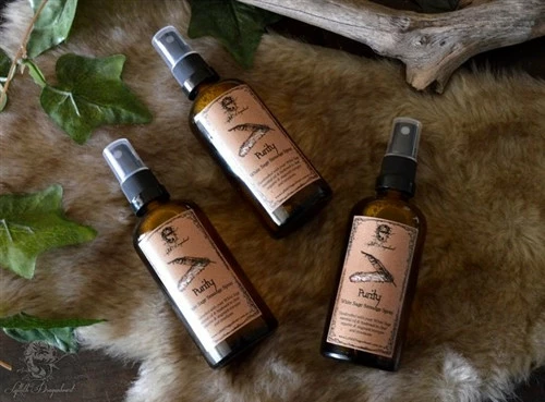 These sprays and mists are made with distilled water, gemstones and pure essential oils chosen for their spiritual and magickal properties – each glass bottle is also charmed and blessed in ritual after being charged by the Elements.