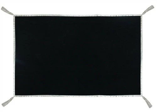 These large altar / table cloths are black velvet and edged in silver and feature tassels on the corners.