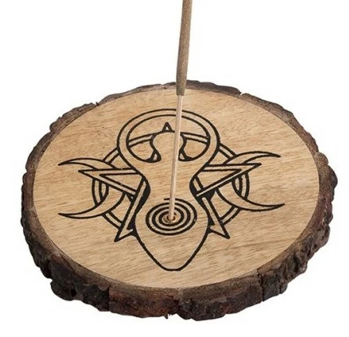 These round incense stick holders, for catching the ash, are made from rustic wood and make a nice altar tile otherwise.