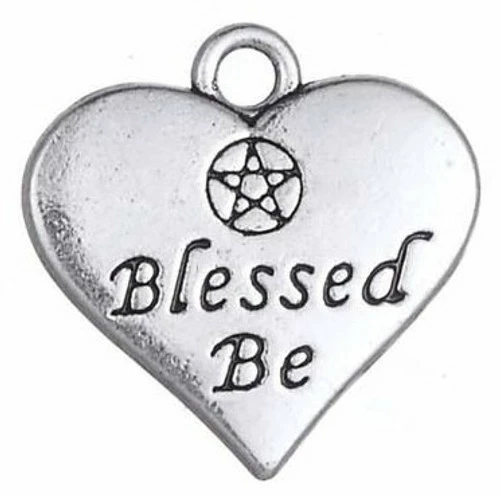 Adorable heart charm with “blessed be” and a pentagram stamped on both sides – grab some on their own to add to charm bags, tie onto candles / besoms, add to a bracelet etc etc.
