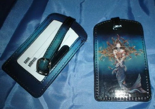 Luggage tag made of coated canvas 65 mm x 113 mm.