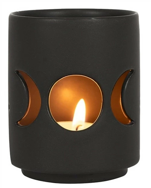 Ceramic tealight votive with triple moon design cut out on the sides – now available through a local importer so much cheaper than before