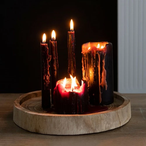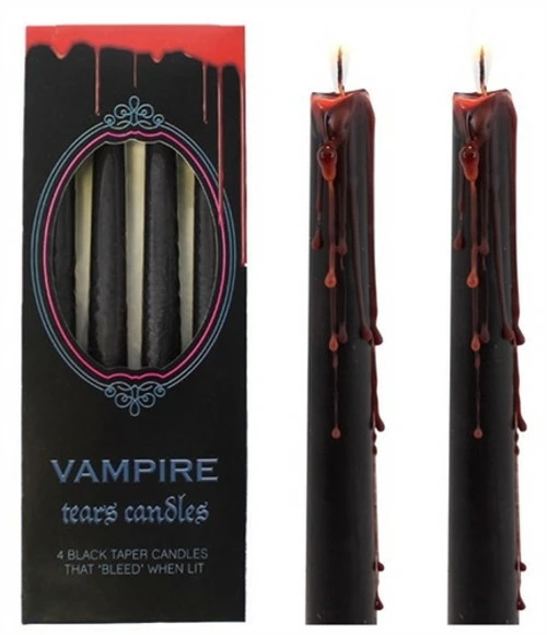 Black tapered dinner candles that “bleed” red as they burn – very cool!